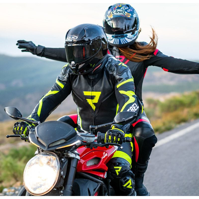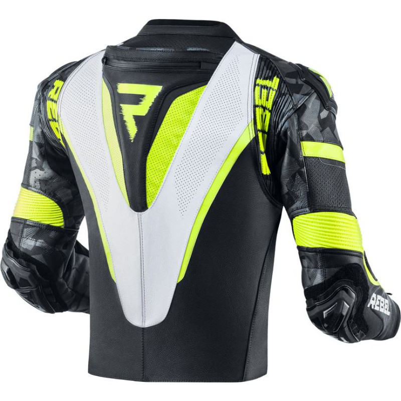 Rebelhorn REBEL BLACK WHITE FLUO YELLOW LEATHER MOTORCYCLE JACKET