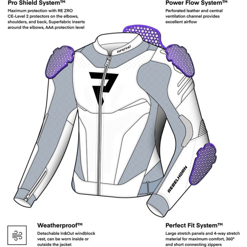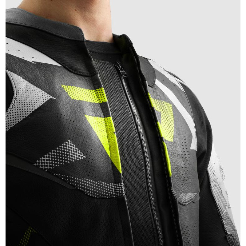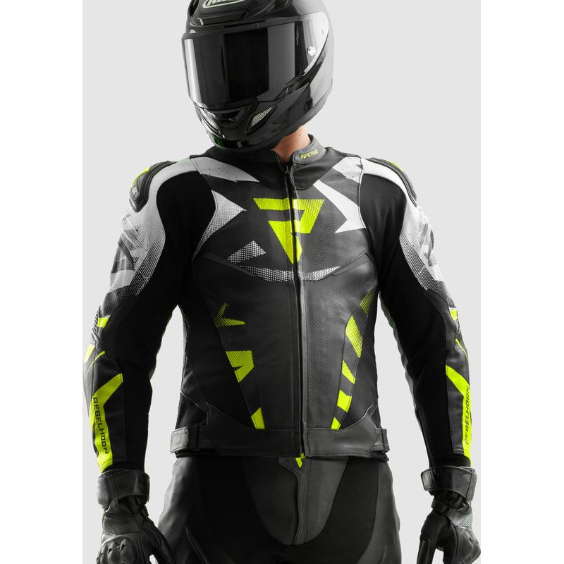 Rebelhorn INFERNO BLACK FLUO YELLOW LEATHER MOTORCYCLE JACKET