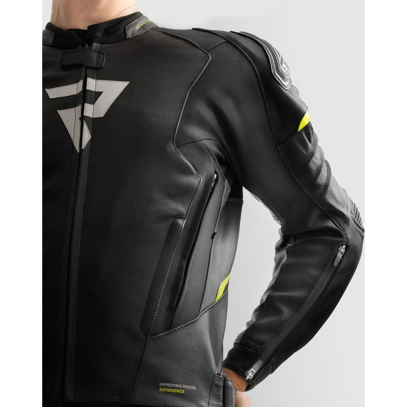 Rebelhorn VELOCE CAMO BLACK GREY FLUO YELLOW LEATHER MOTORCYCLE JACKET