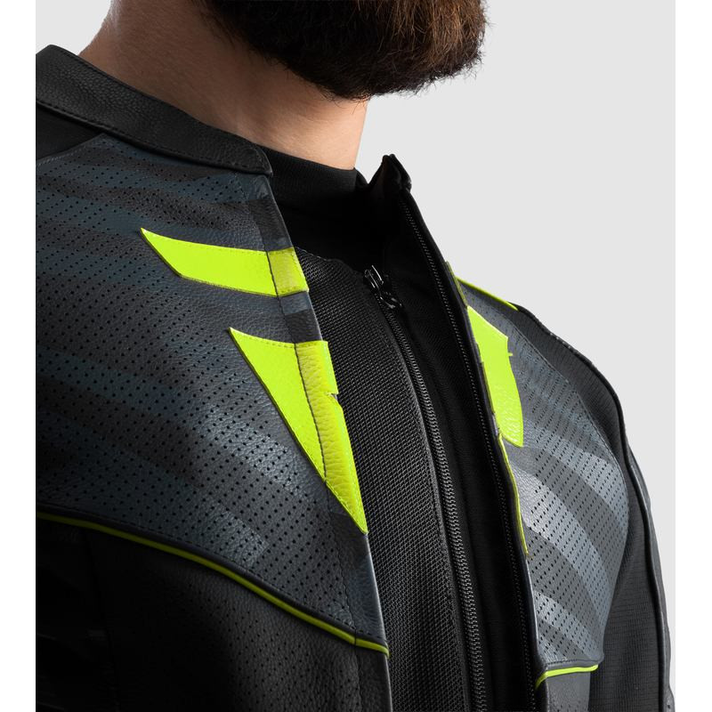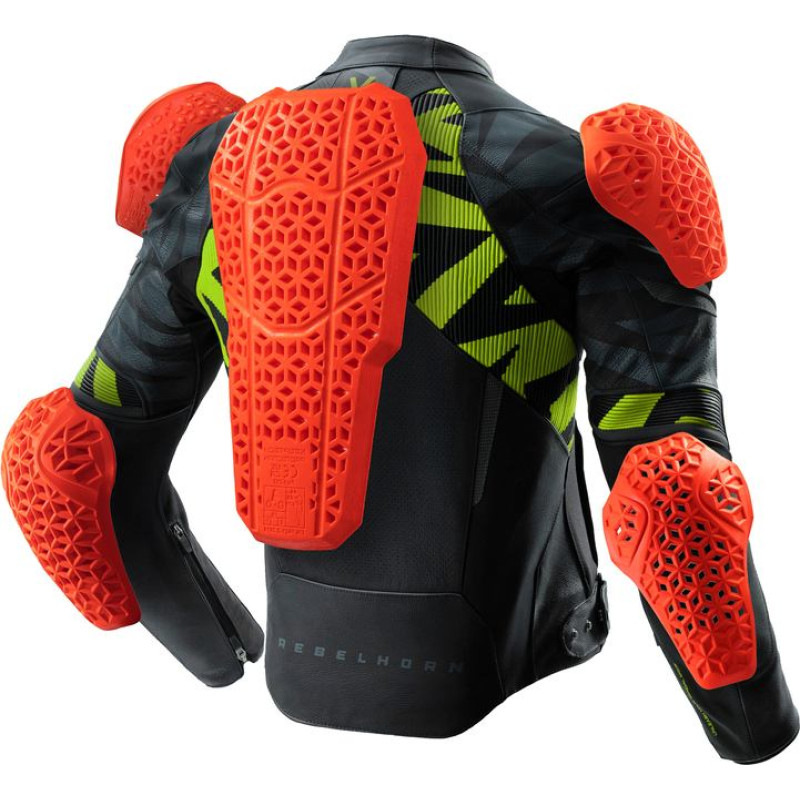 Rebelhorn VANDAL 2 BLACK GREY FLUO YELLOW LEATHER MOTORCYCLE JACKET