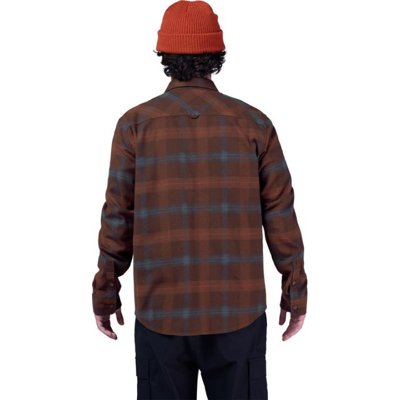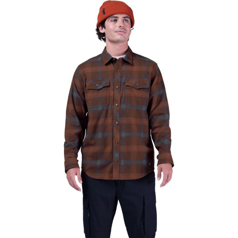 FOX SURVIVALIST CORE FLANNEL LONG SLEEVE SHIRT DARK BROWN