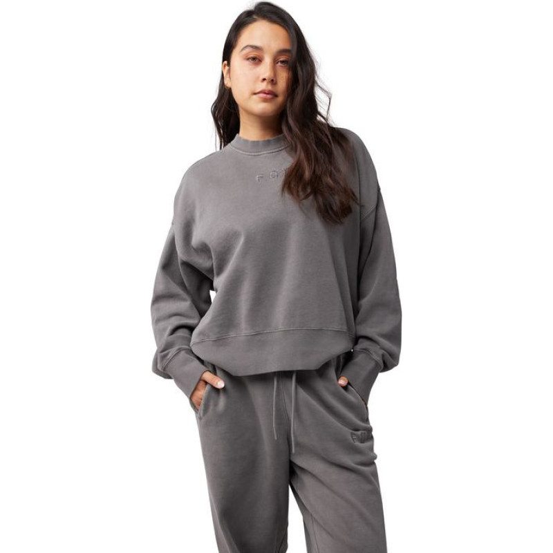 FOX LADY WORDMARK OVERSIZED FLEECE CREW PEWTER XS sweatshirt.